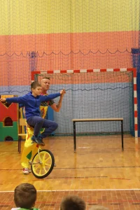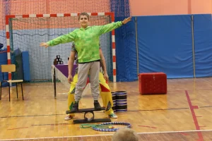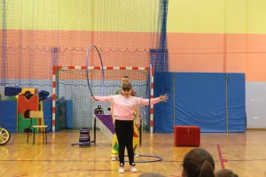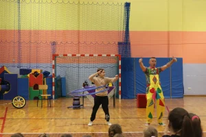 14 kwietnia do naszej szkoły zawitali artyści cyrkowi z grupy SZOK. Dzieci z zapartym tchem obserwowały występy akrobatyczne, żonglerkę i pokazy iluzji. Wiele emocji wywołało pojawienie się klauna z wężem. W programie wziął także udział ogromny, nadmuchany Superman i wielki „biały miś”. Uczniowie mogli również sami spróbować swoich cyrkowych umiejętności, czynnie włączając się do zabawy. Występ dostarczył wszystkim wiele radości i mnóstwo miłych wrażeń.