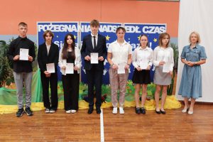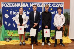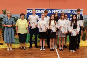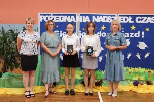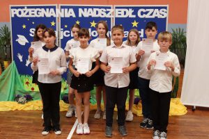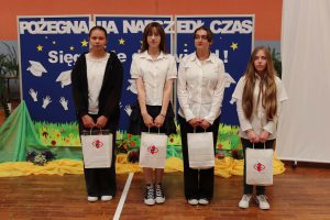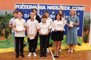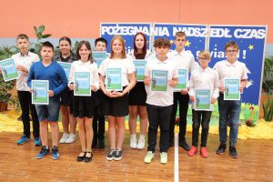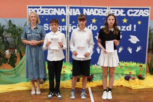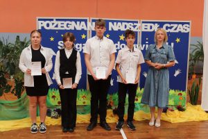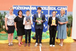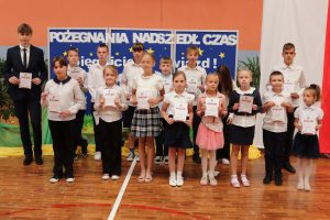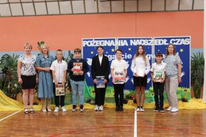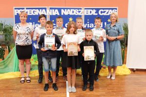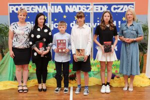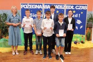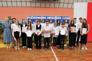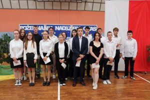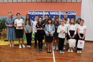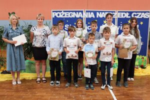 Następnie wręczono dyplomy za wzorowe zachowanie dla uczniów z klas 4 – 8, dyplomy bardzo dobrego ucznia dla dzieci z klas 1 – 3, dyplomy i nagrody za 100% i wzorową frekwencję oraz stypendia za wysokie wyniki w nauce i osiągnięcia sportowe.