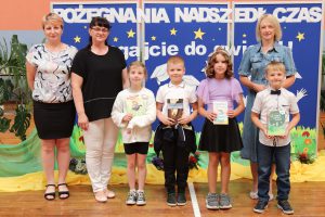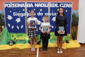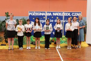 W pierwszej kolejności nagrodzeni zostali prymusi szkoły, czyli uczniowie, którzy uzyskali średnią ocen 5,0 i wyższą. Na specjalne wyróżnienie zasługują dwie uczennice: Natalia Radczuk z klasy 4b (średnia ocen 5,45) oraz Gabriela Gmitruczuk z klasy 6a (średnia ocen 5,41). Gratulujemy!!!