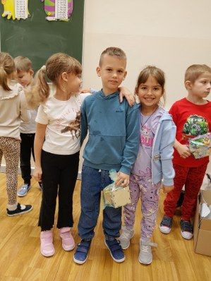 Było bardzo wesoło, a na twarzach dzieci gościły uśmiechy. W klasie 1a odbyło się spotkanie przy pizzy, podczas którego chłopcy otrzymali upominki od swoich koleżanek.