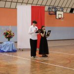 na scenę wkroczyli prowadzący – Gabrysia i Antek, którzy z humorem i elegancją powitali wszystkich zgromadzonych i złożyli nauczycielom życzenia – satysfakcji, radości, dumy z wykonywanej pracy, niekończącej się cierpliwości oraz zawsze gorącej kawy. Podkreślili, że szkoła to coś więcej niż budynek – to wspólnota tworzona przez ludzi pełnych pasji i serca.