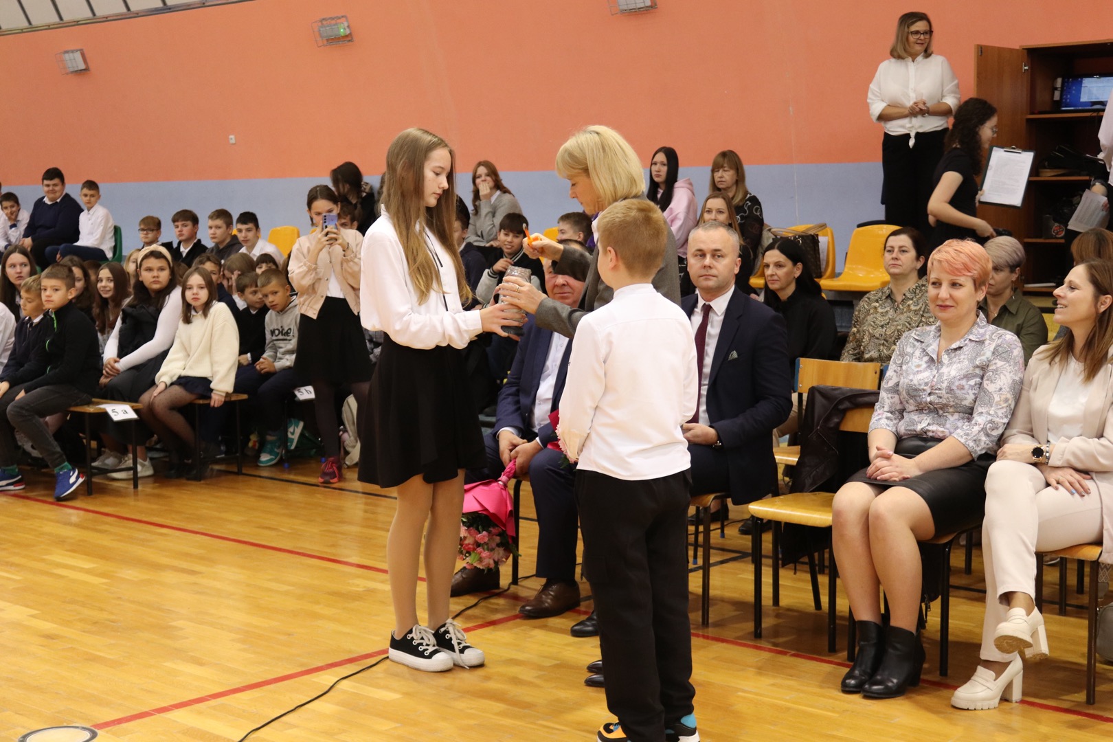 Po wręczeniu wszystkich nagród prowadzący – Gabrysia i Antek – podziękowali nauczycielom za wspólną zabawę. Uczniowie otrzymali gromkie brawa za przygotowanie scenariusza, występy oraz doskonałą organizację. Podczas całej uroczystości panowała atmosfera radości, humoru i wdzięczności. Wydarzenie pokazało, że uczniowie potrafią w niebanalny sposób docenić swoich nauczycieli, a wspólne świętowanie Dnia Edukacji Narodowej może być nie tylko wzruszające, ale też pełne dobrej zabawy.