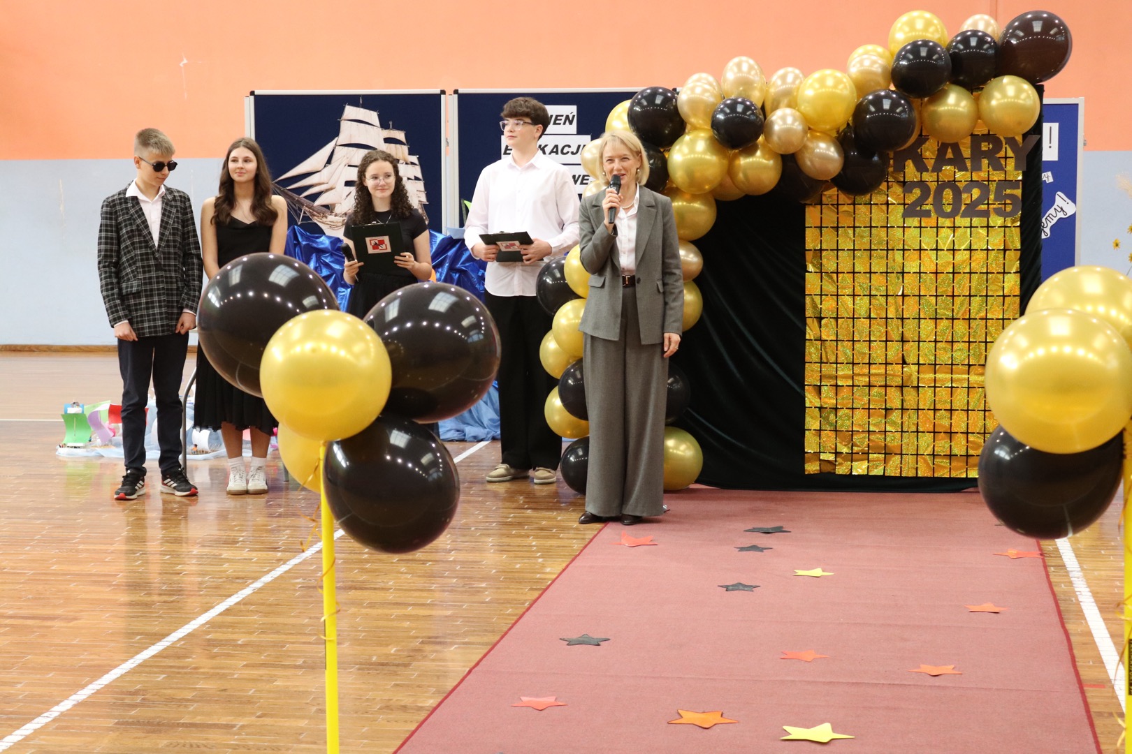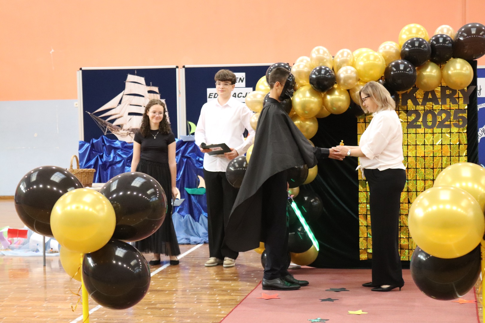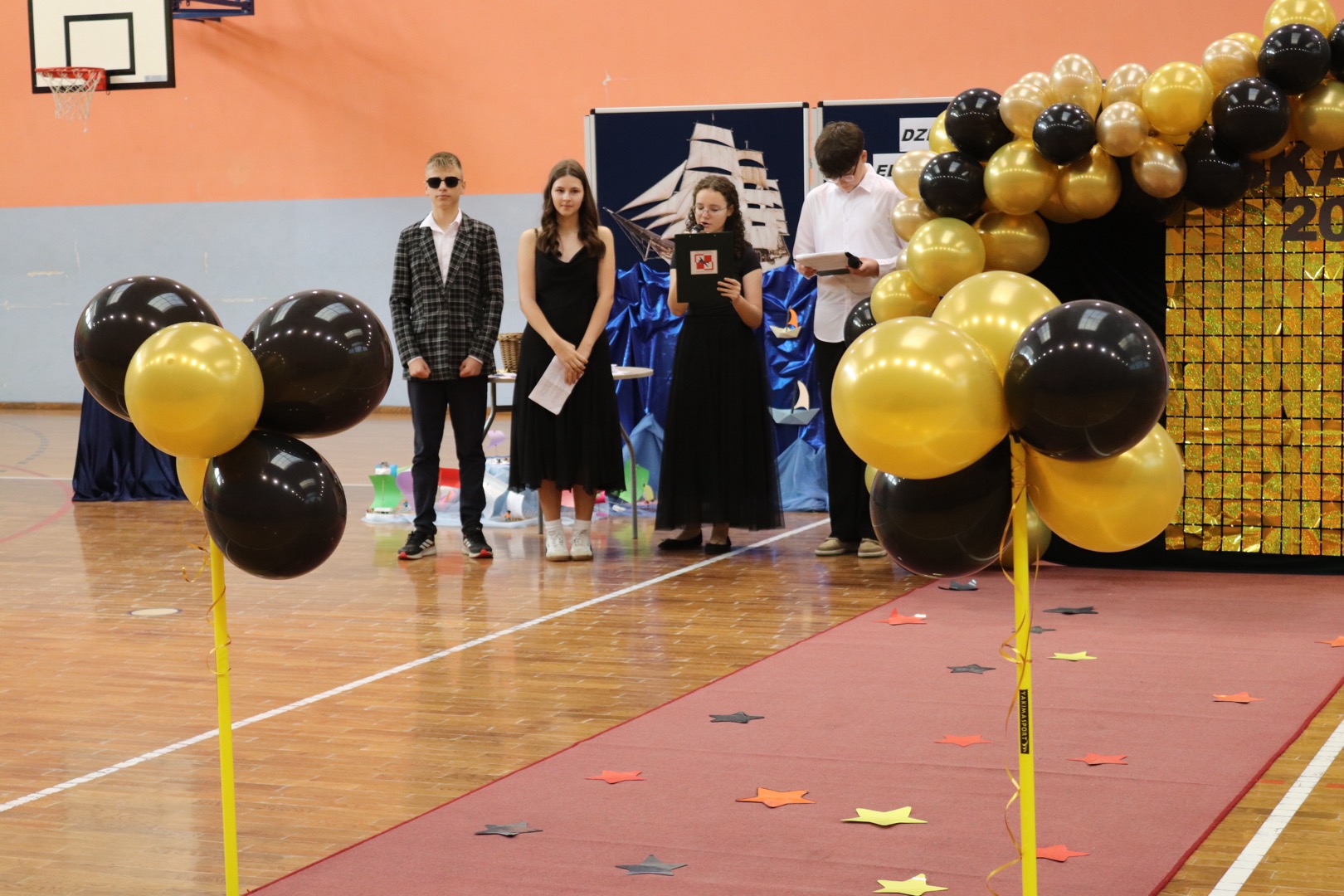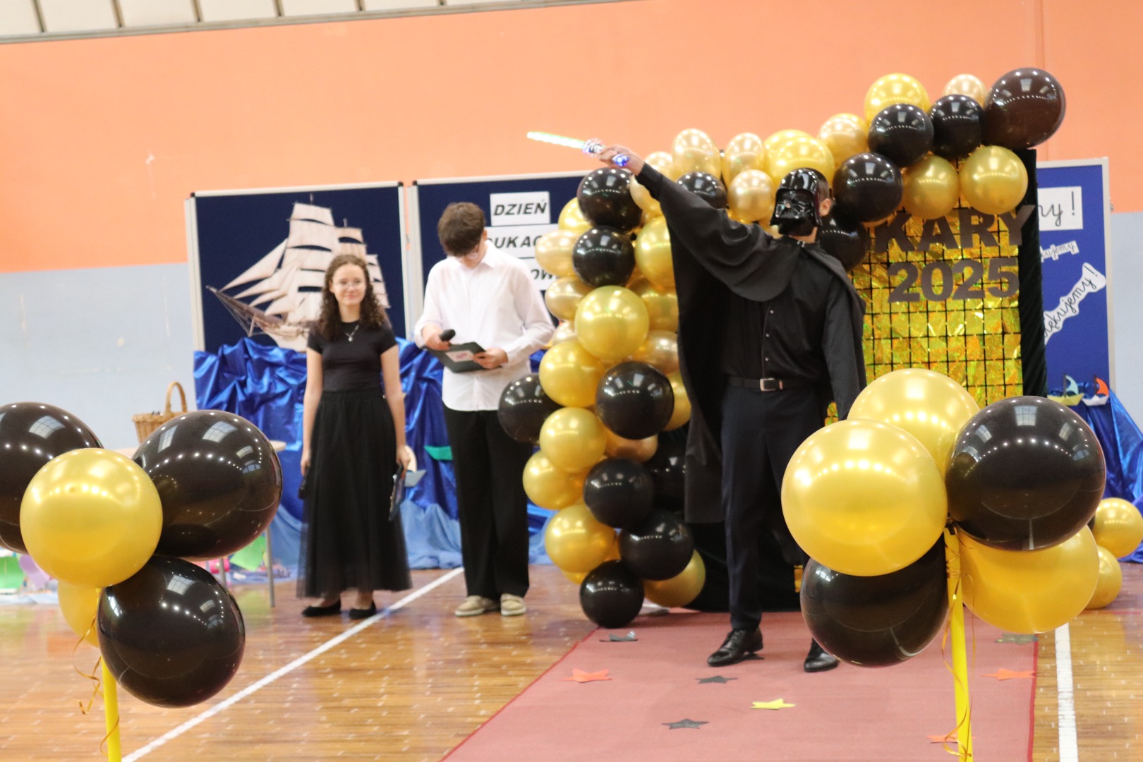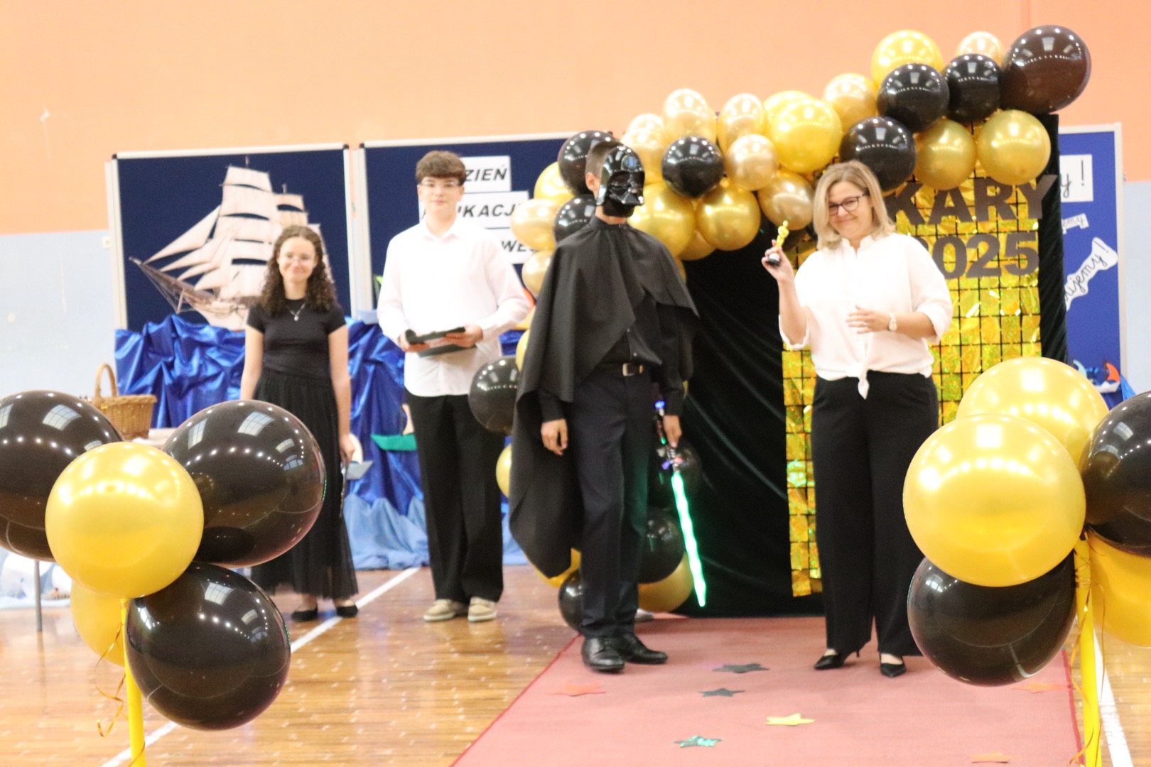 Uroczystość rozpoczęła się charakterystycznym „Star Wars intro”, podczas którego uczniowie przygotowywali scenografię i czerwony dywan. Gdy rozbrzmiały fanfary,