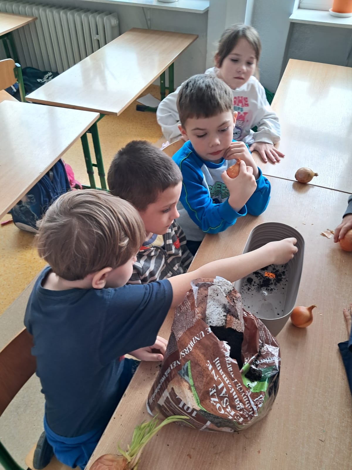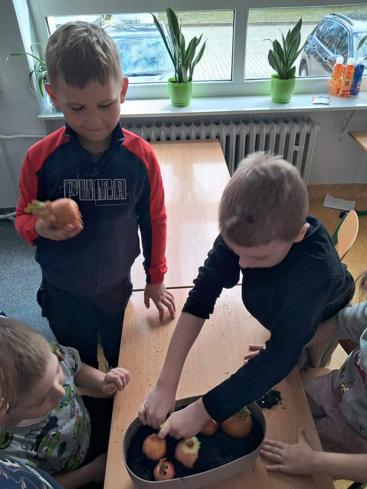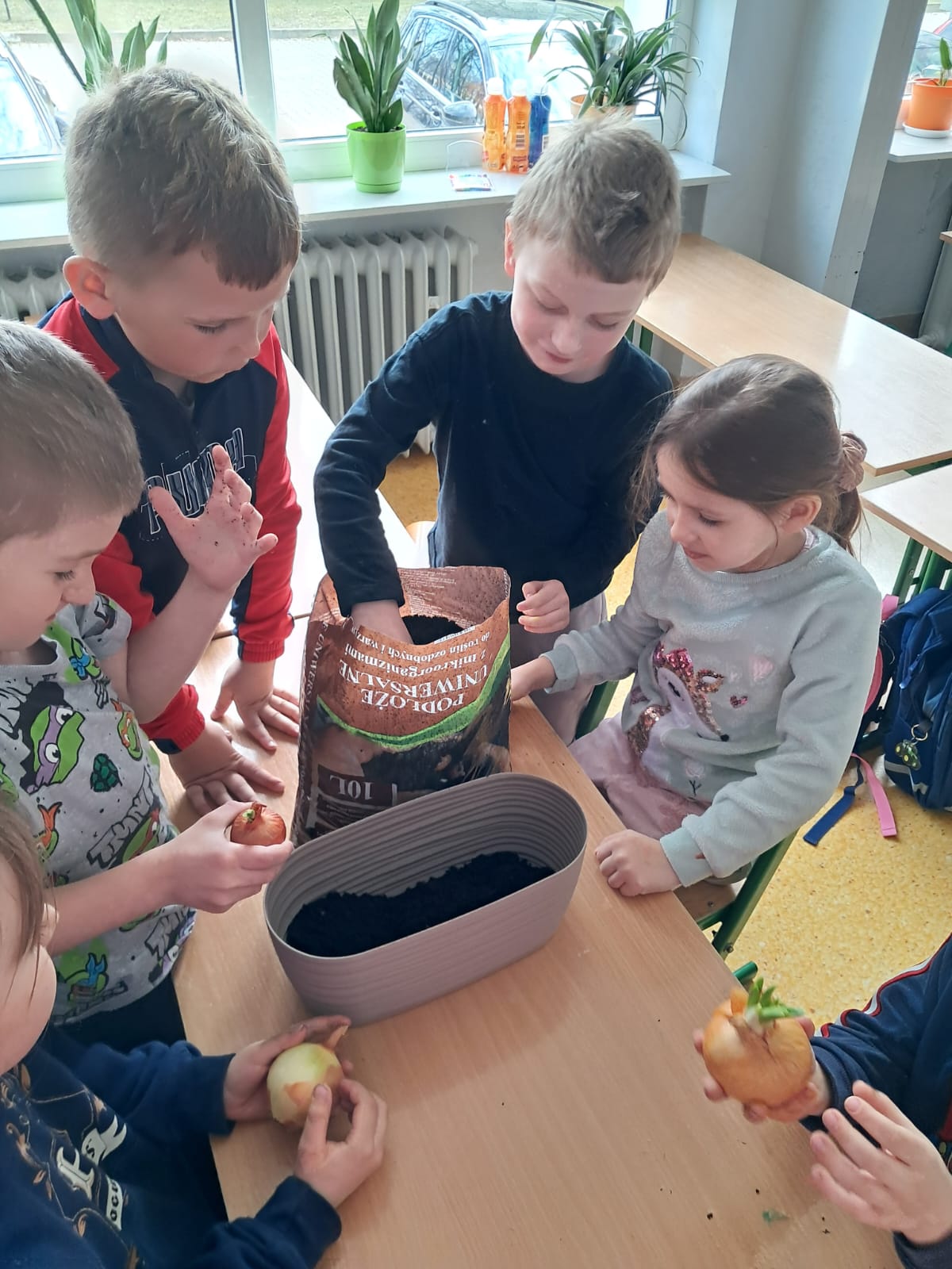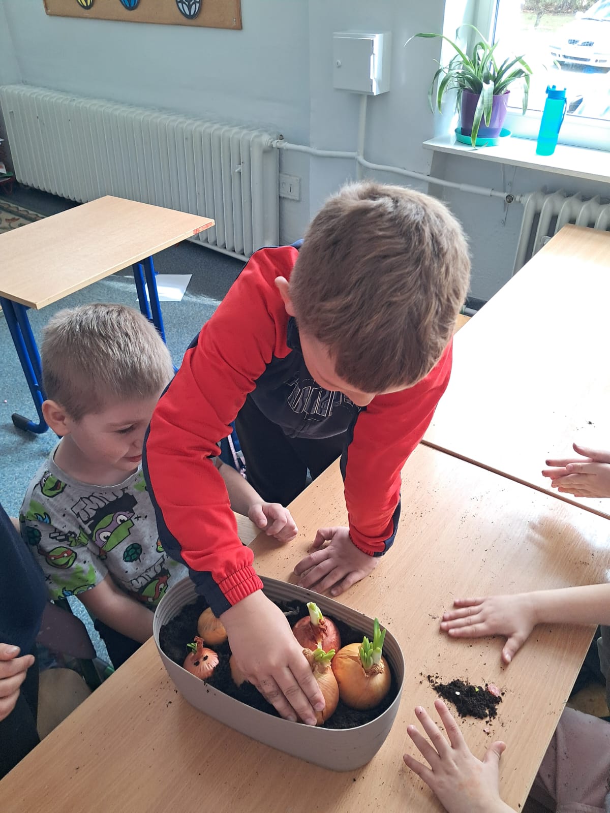 W marcowy czwartek dzieci z grupy 0 „b” założyły „Mini hodowlę cebuli”, poprzez, którą: budziły ciekawość poznawczą; doskonaliły sprawność manualną; rozwijały myślenie przyczynowo- skutkowe🧅