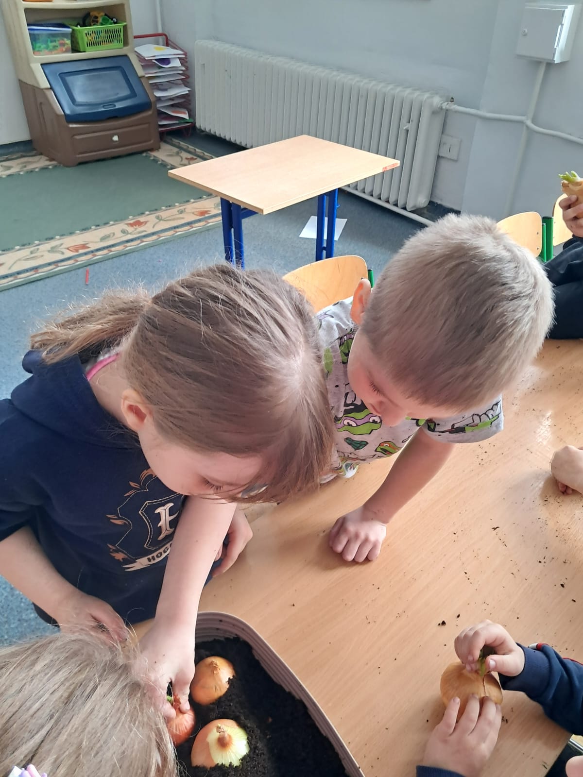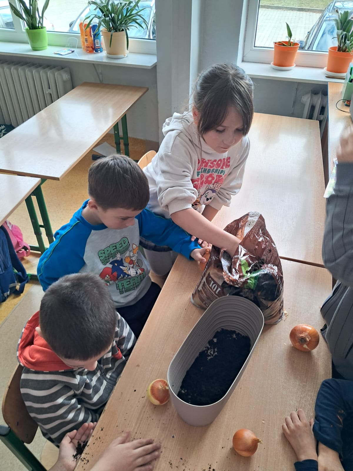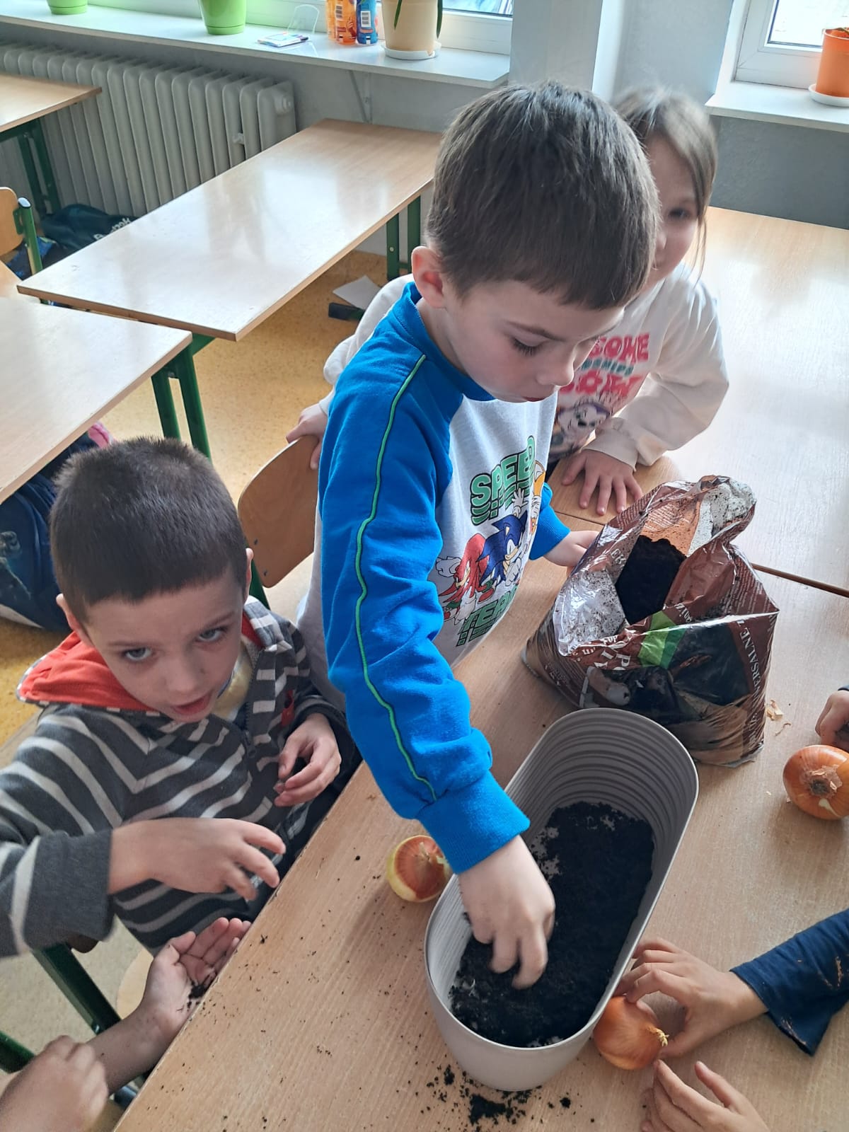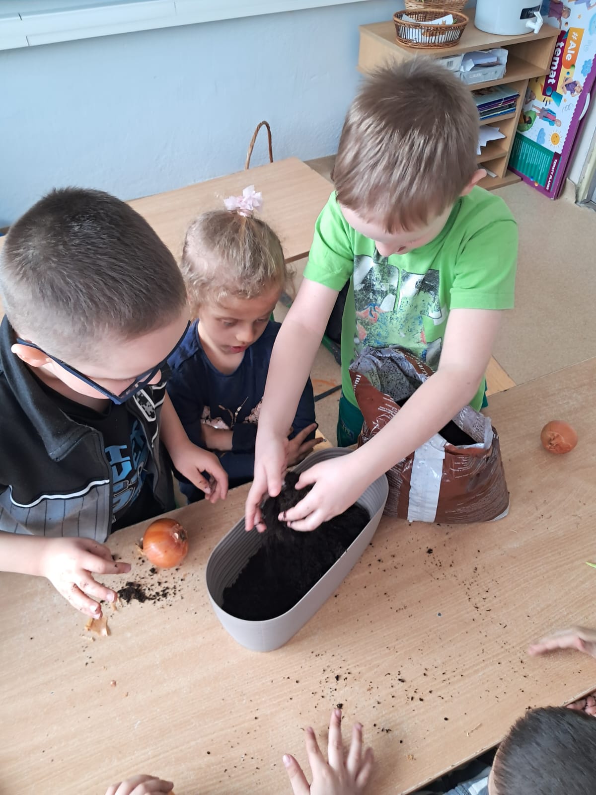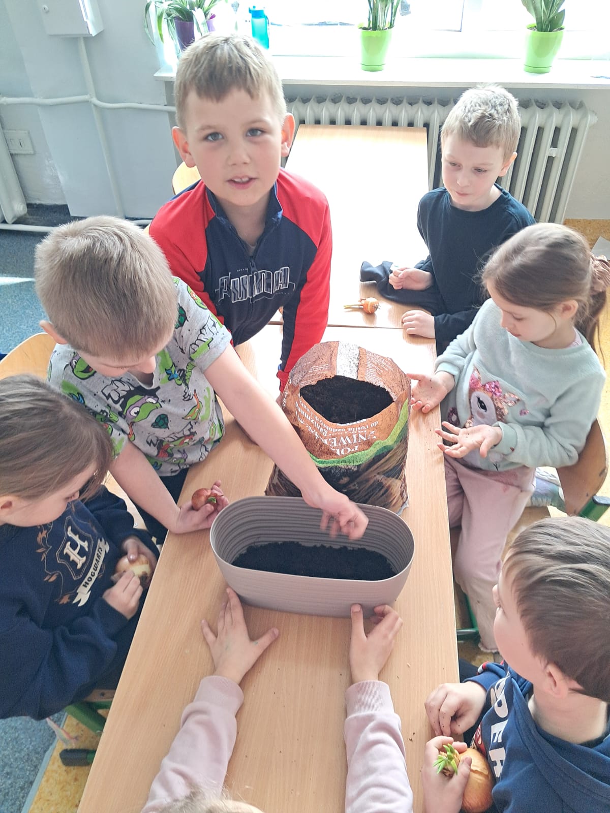 W marcowy czwartek dzieci z grupy 0 „b” założyły „Mini hodowlę cebuli”, poprzez, którą: budziły ciekawość poznawczą; doskonaliły sprawność manualną; rozwijały myślenie przyczynowo- skutkowe🧅