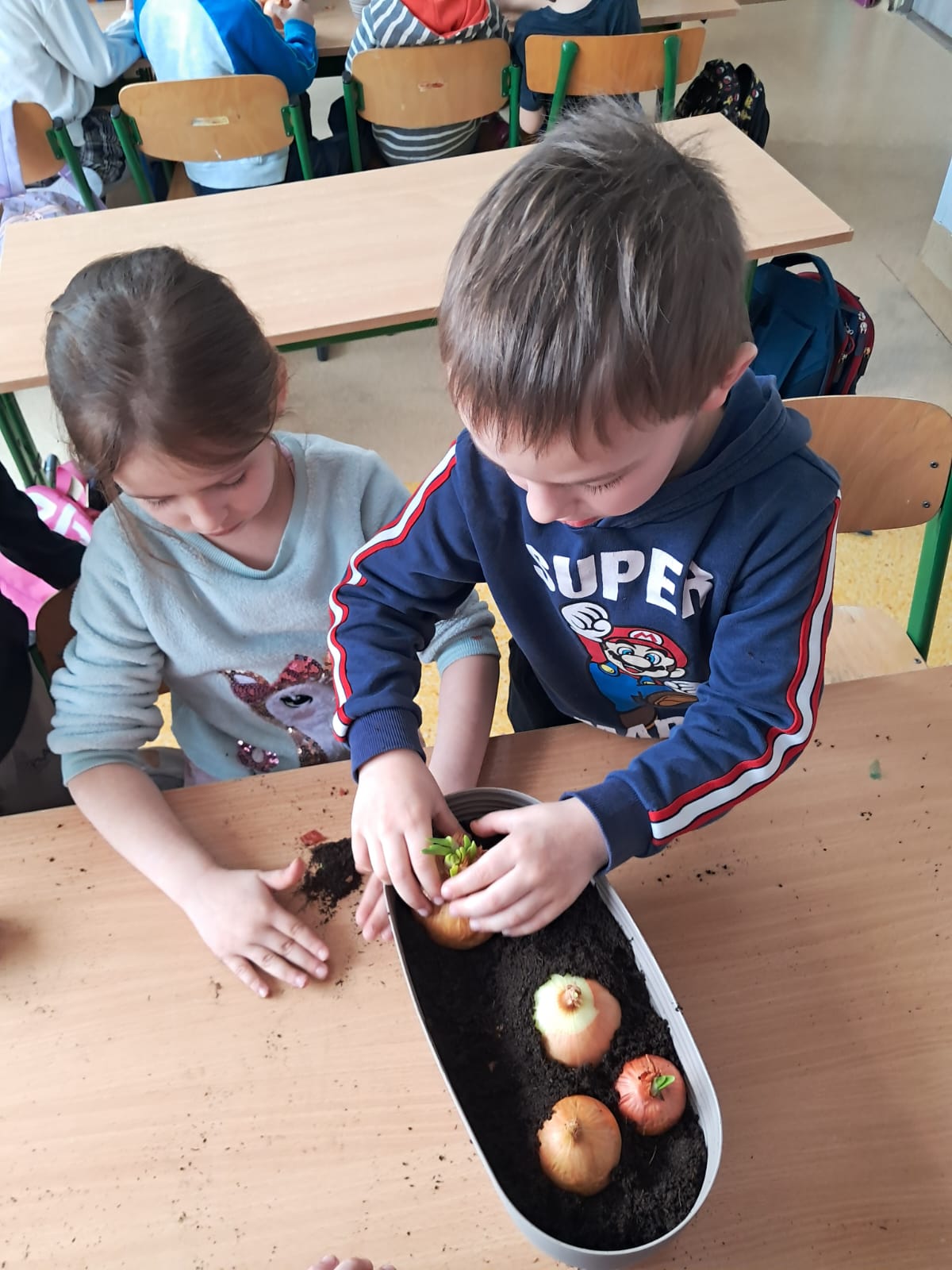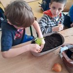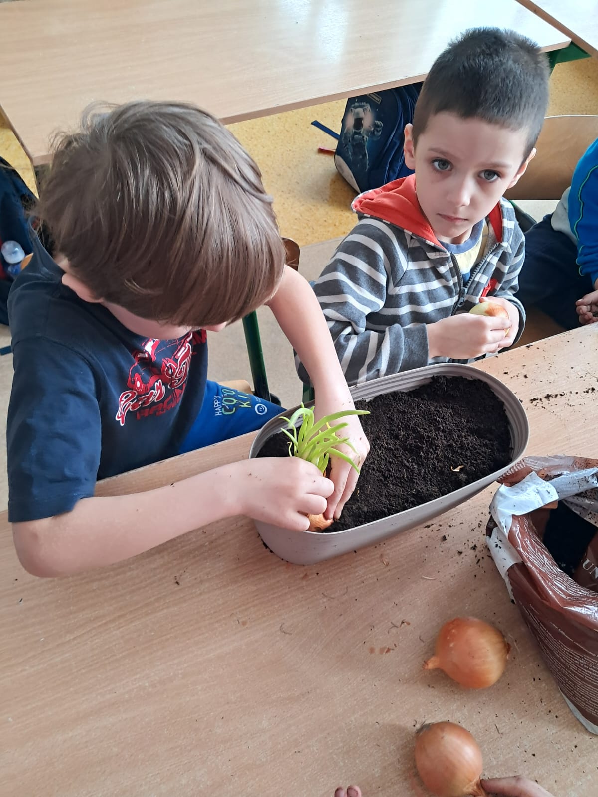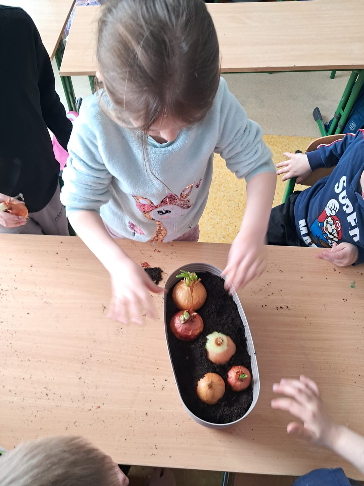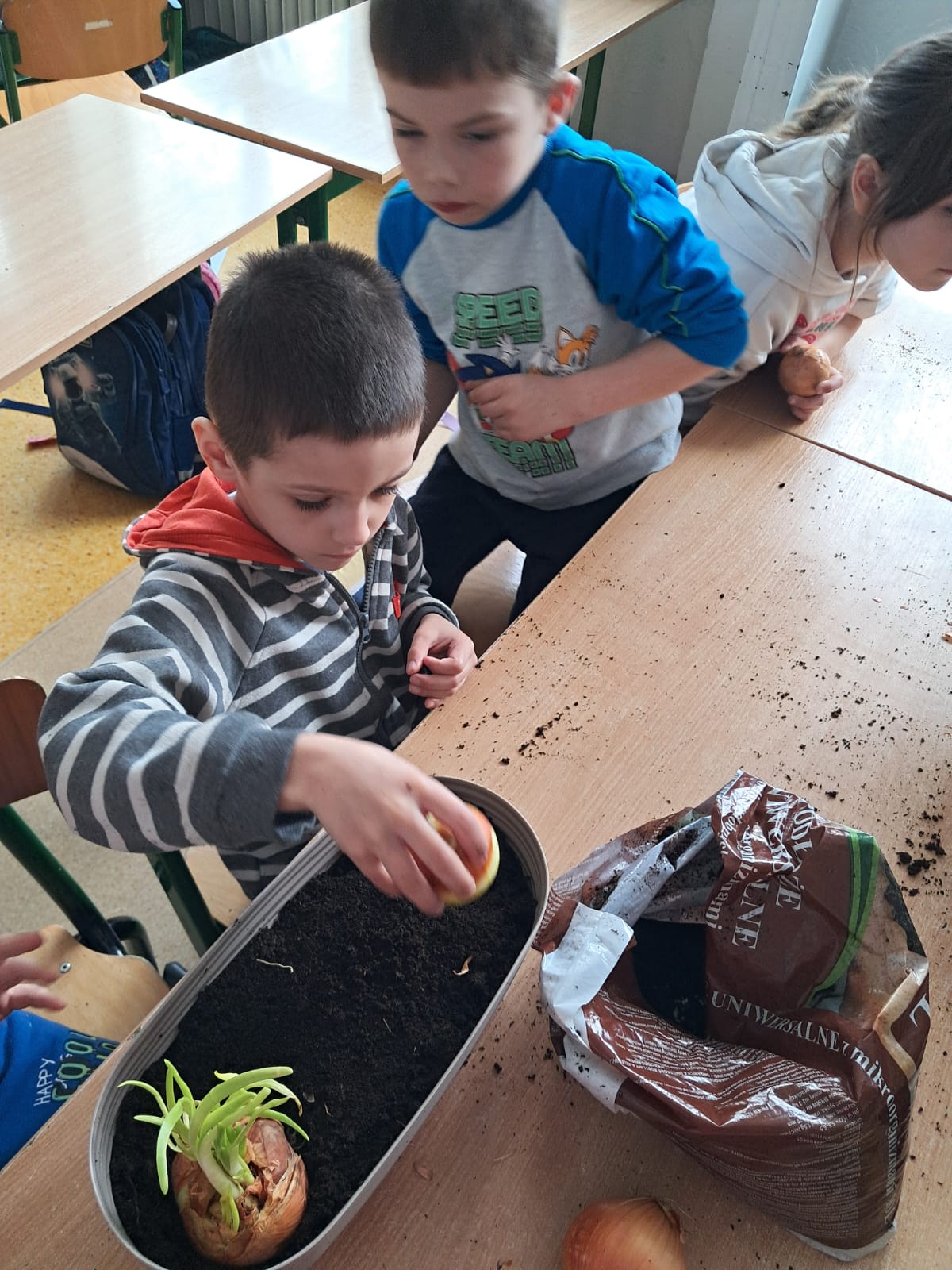 W marcowy czwartek dzieci z grupy 0 „b” założyły „Mini hodowlę cebuli”, poprzez, którą: budziły ciekawość poznawczą; doskonaliły sprawność manualną; rozwijały myślenie przyczynowo- skutkowe🧅
