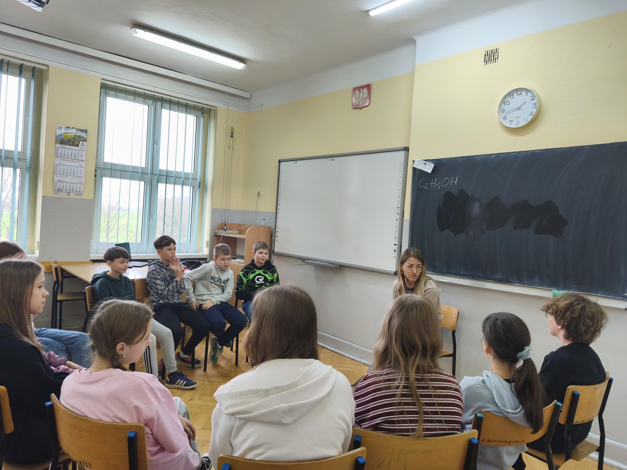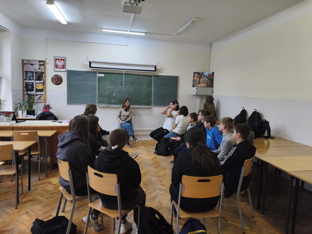 W dniach 30.03.2026 r. oraz 31.03.2026 r. uczniowie klas 5a, 5b, 6a i 6b uczestniczyli w Rekomendowanym Programie Profilaktycznym „Debata”. Zajęcia zostały przeprowadzone przez panią Kamilę Pakosz z Centrum Profilaktyki Dialog w Krakowie.
