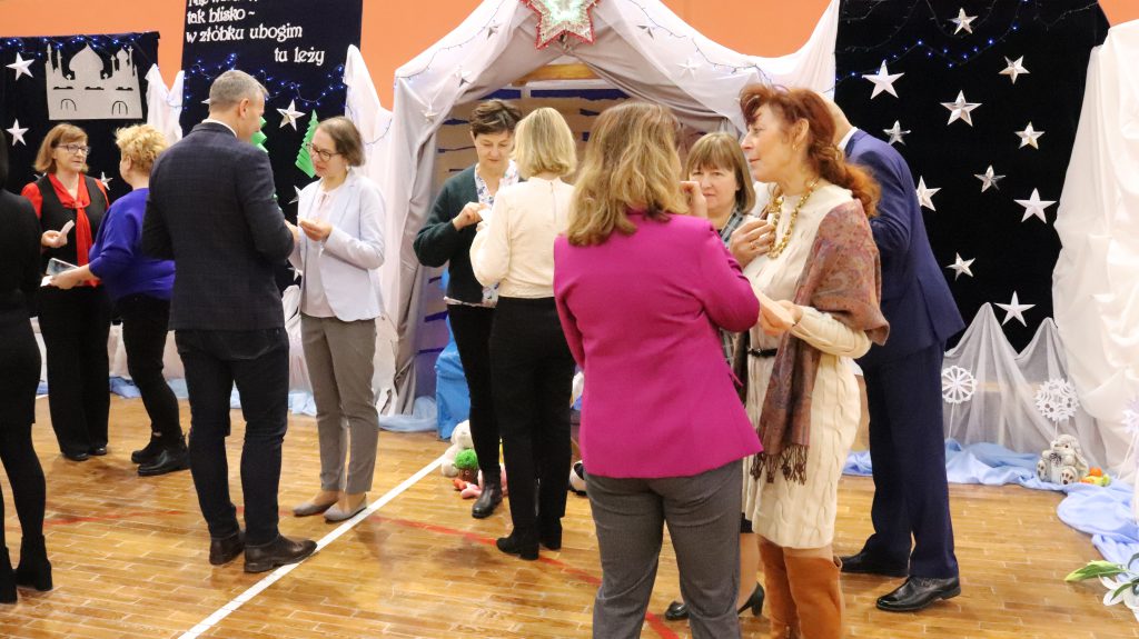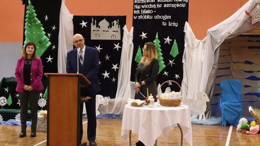 Po występie dzieci został odczytany fragment Ewangelii o narodzeniu Jezusa Chrystusa i nastąpiło symboliczne podzielenie się opłatkiem. Później głos zabrali zaproszeni gości, którzy złożyli wszystkim życzenia z okazji nadchodzących świąt.