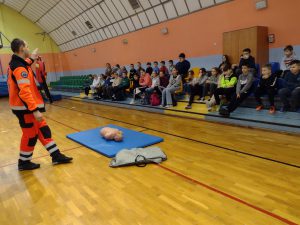 24 stycznia 2024r. uczniowie klas piątych z naszej szkoły uczestniczyli w spotkaniu z ratownikiem medycznym Panem Kamilem Bobrukiem. Podczas tego spotkania uczniowie zapoznali się z najważniejszymi zasadami udzielania pierwszej pomocy. Pan Kamil w bardzo ciekawy sposób opowiedział dzieciom o pracy ratownika oraz pokazał, jak udzielić pomocy osobie poszkodowanej, nie narażając swojego życie i zdrowia. Zwrócił również uwagę na niebezpieczne zachowania uczniów w szkole oraz przykre konsekwencje zdrowotne takich zachowań.