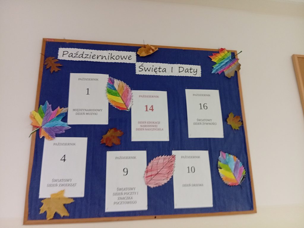 10 października 2023 r. obchodziliśmy na świetlicy szkolnej Międzynarodowy Dzień Drzewa. Podczas zajęć przeprowadziliśmy szereg pogadanek o ochronie przyrody, wzbogaciliśmy wiedzę o gatunkach drzew i wyglądzie liści. Z zaangażowaniem kolorowaliśmy drzewa, rysowaliśmy kredkami liście, malowaliśmy je flamastrami i farbami oraz tworzyliśmy witraże. Na wykonanie pracy mieliśmy jeszcze mnóstwo pomysłów. Paseczki z kolorowego papieru naklejaliśmy na kartkę tworząc liście, wypinaliśmy ich kształt dziurkaczami ozdobnymi oraz za pomocą patyczków i farby stosując technikę kropkowania tworzyliśmy jesienne drzewa. Prace umieściliśmy na tablicy w sali świetlicowej tworząc gazetkę tematyczną.