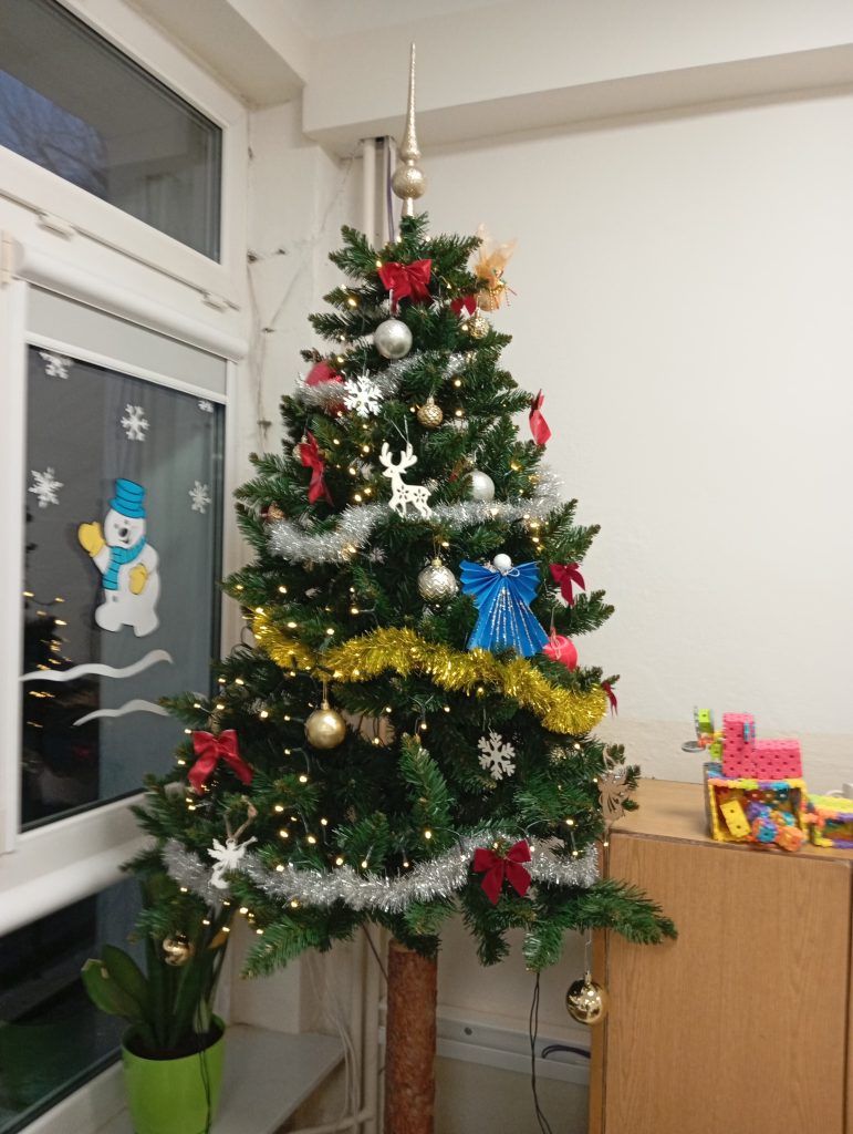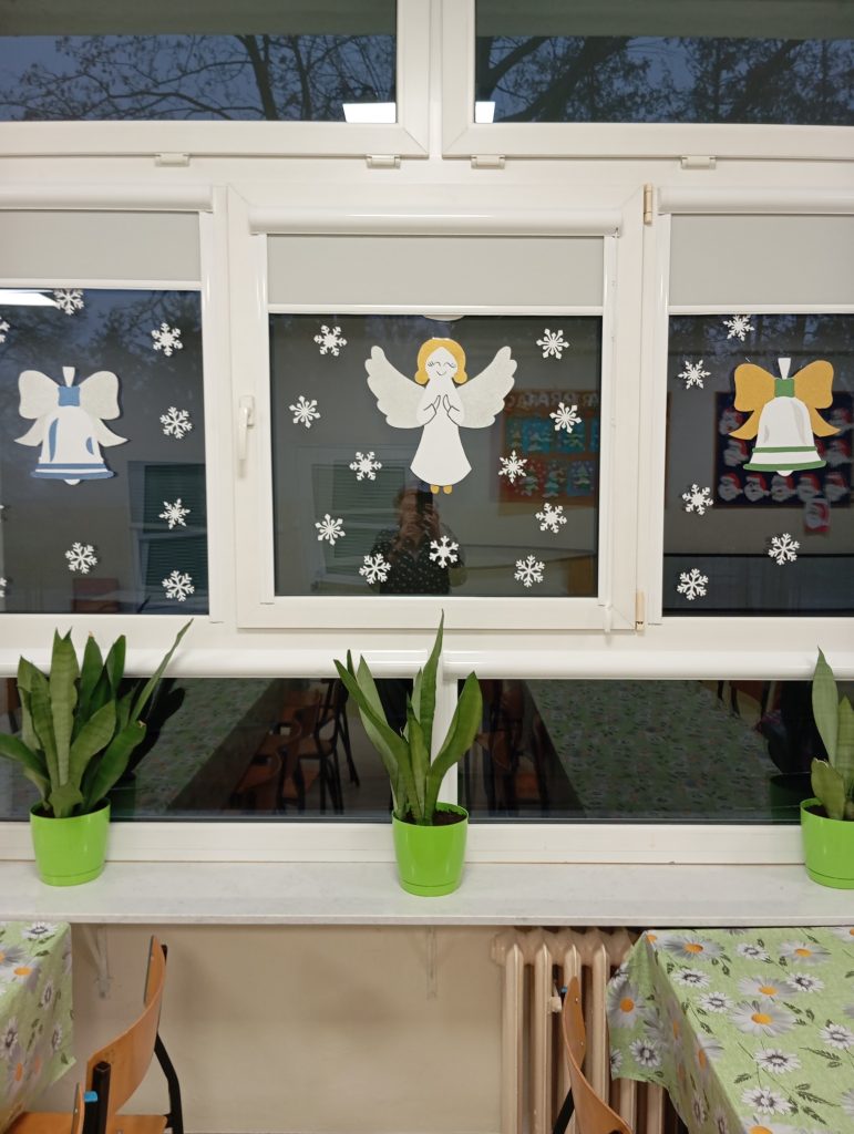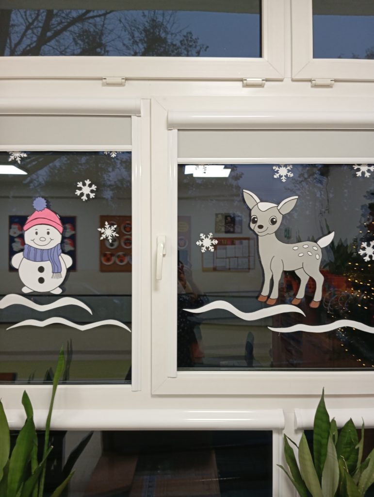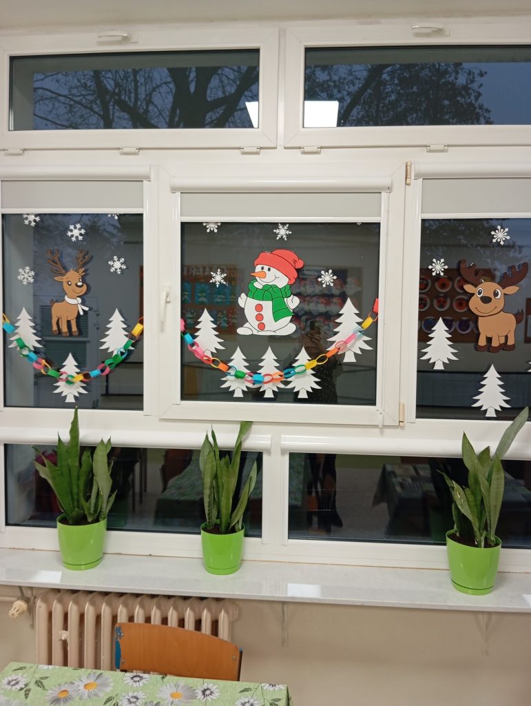 W świetlicy szkolnej zapanował wyjątkowy, pełen radości i ciepła sezon świąteczny. Pojawiła się choinka, papierowe gwiazdy, łańcuchy oraz kolorowe dekoracje okienne, które wprowadziły wszystkich w zimowy nastrój. Wspólne ubieranie choinki stało się ważnym momentem integracyjnym, a codzienne odliczanie dni do świąt wzbudziło wiele emocji.