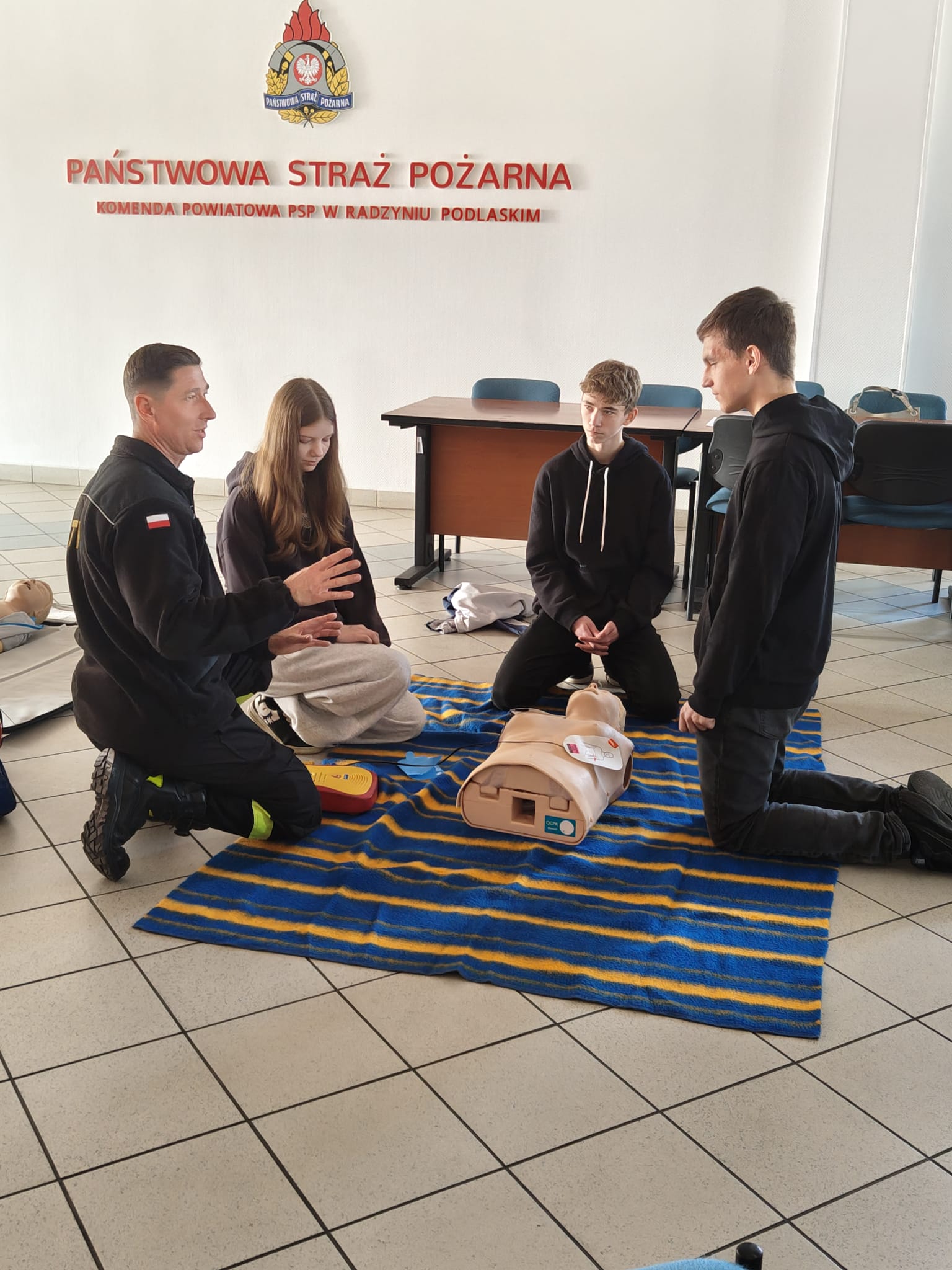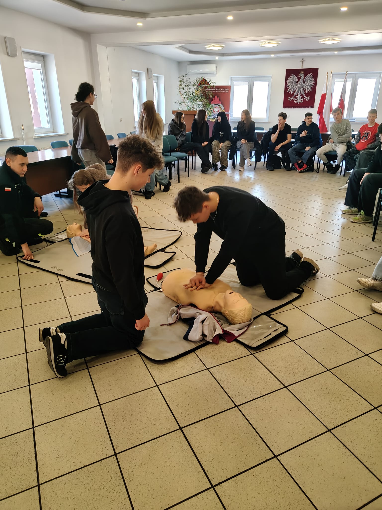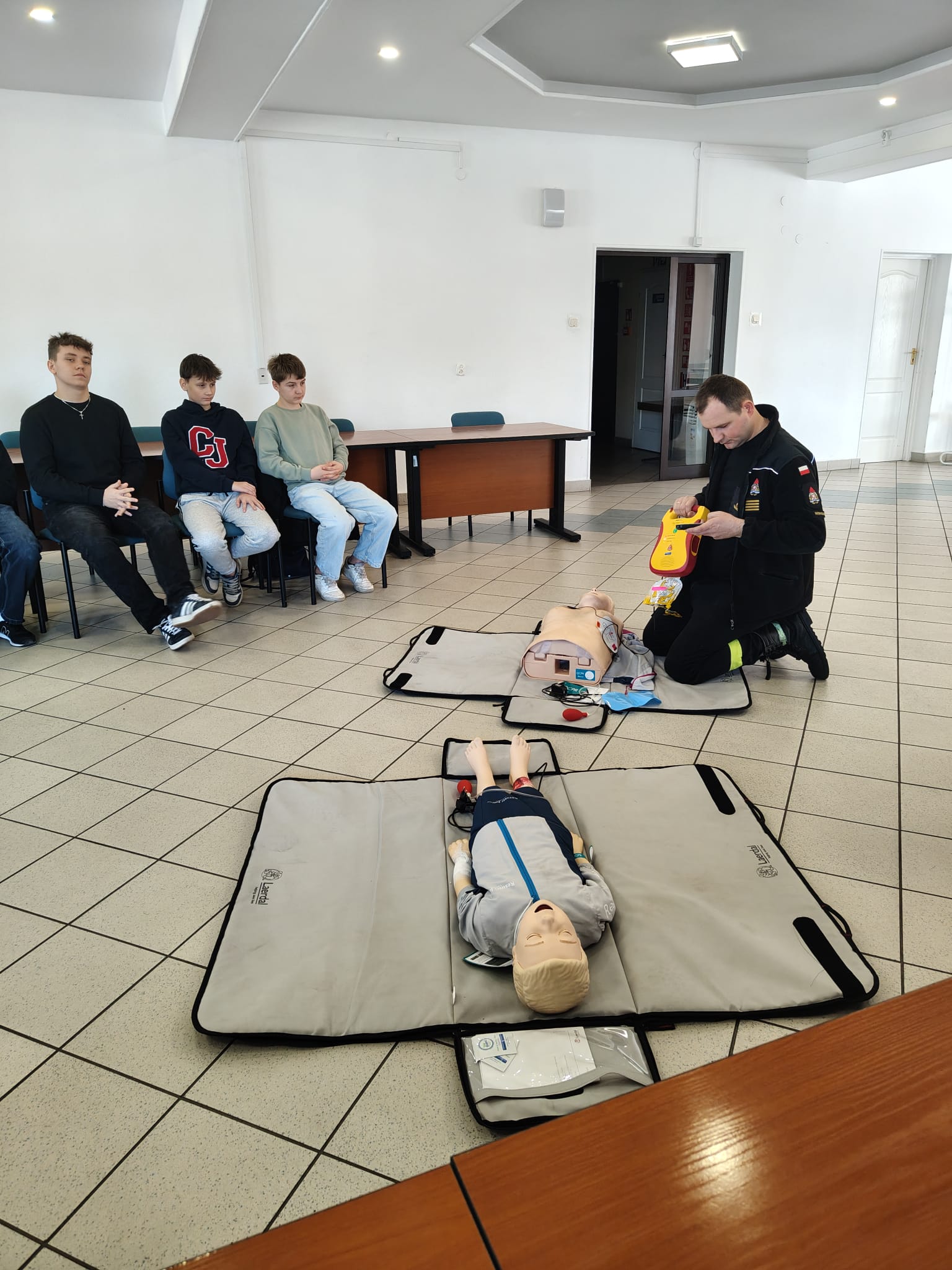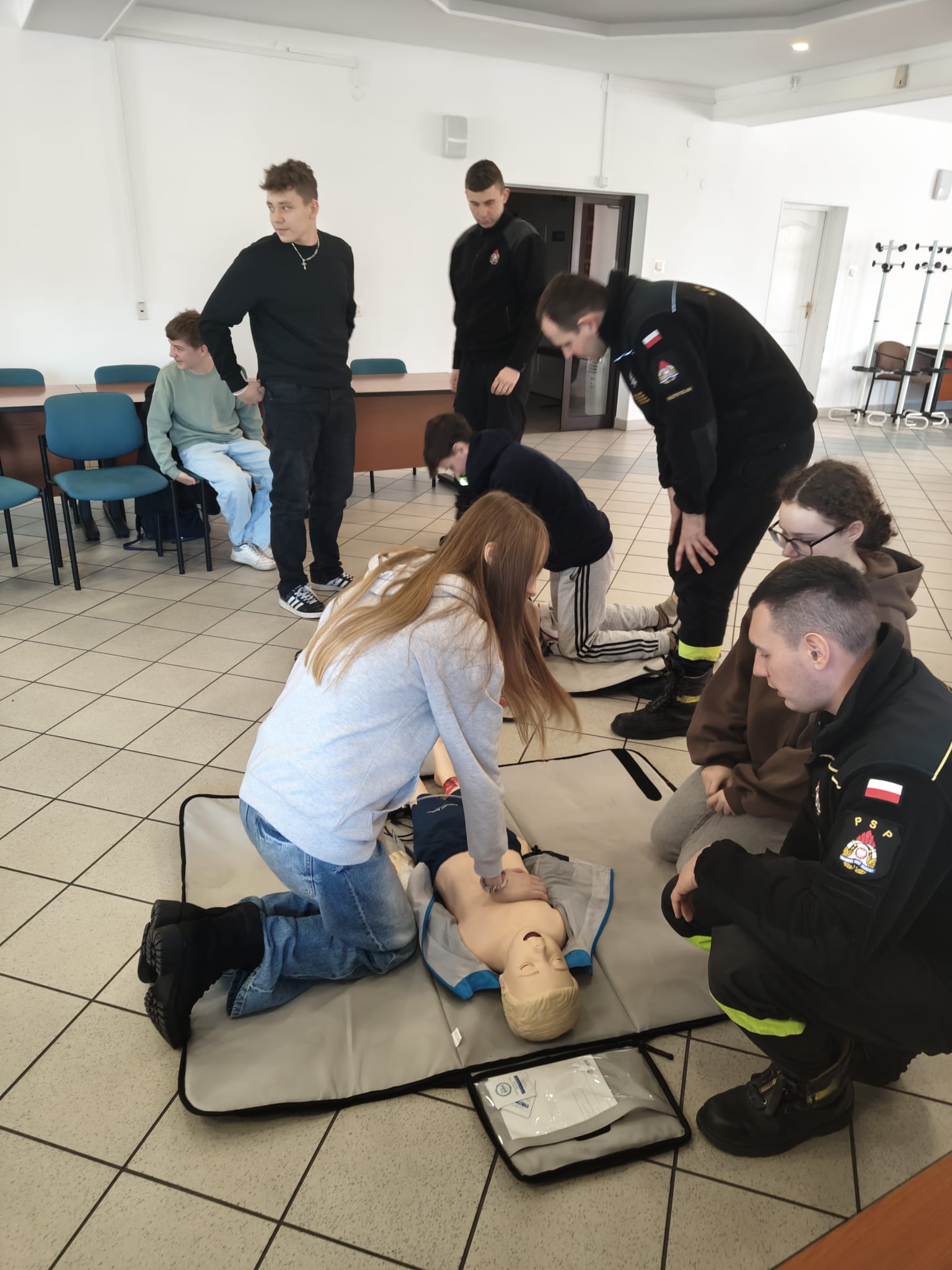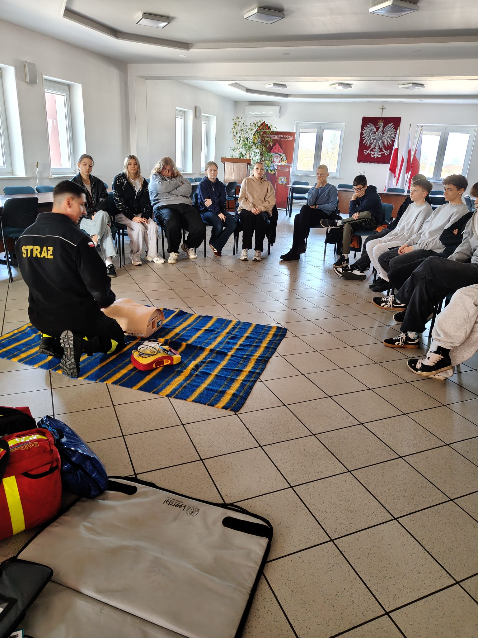 Podczas spotkania strażacy w przystępny i ciekawy sposób przybliżyli uczniom zagadnienia związane z bezpieczeństwem. Uczniowie poznali podstawowe zasady udzielania pierwszej pomocy przedmedycznej oraz właściwego reagowania w sytuacjach zagrożenia zdrowia i życia. Po części teoretycznej odbyły się zajęcia praktyczne – uczniowie mieli możliwość ćwiczenia udzielania pierwszej pomocy na fantomach pod okiem strażaków, co pozwoliło im w praktyce przećwiczyć zdobytą wiedzę.