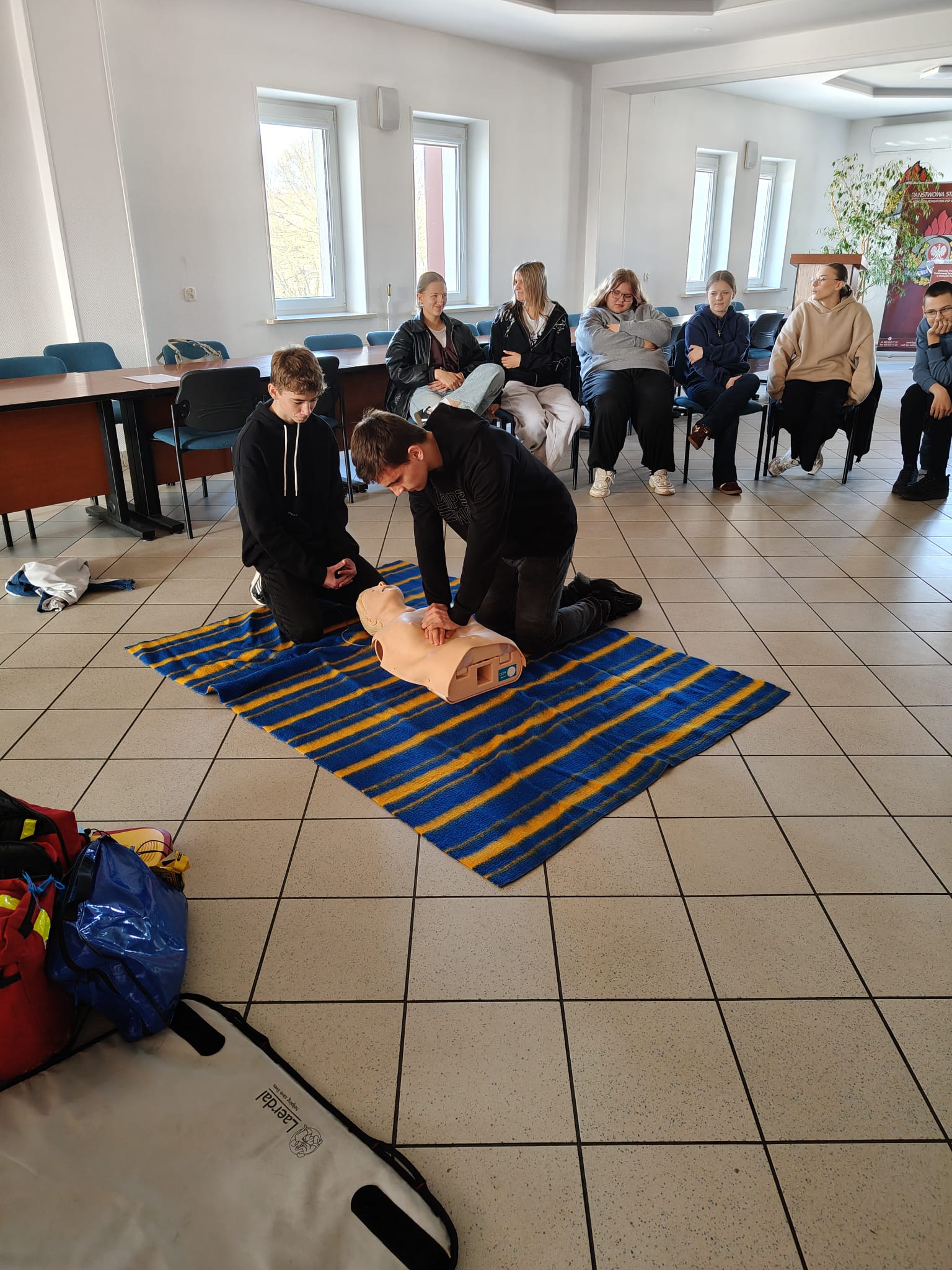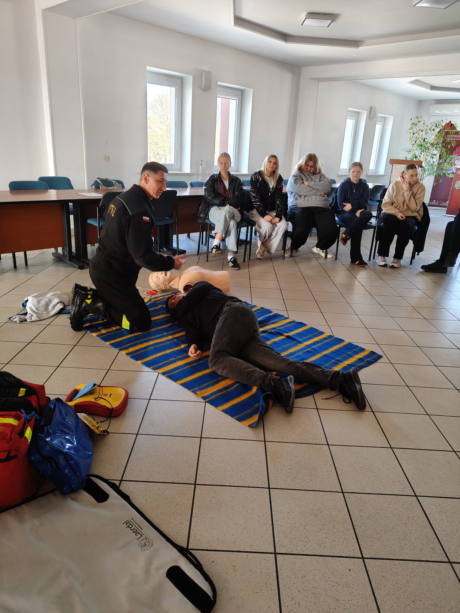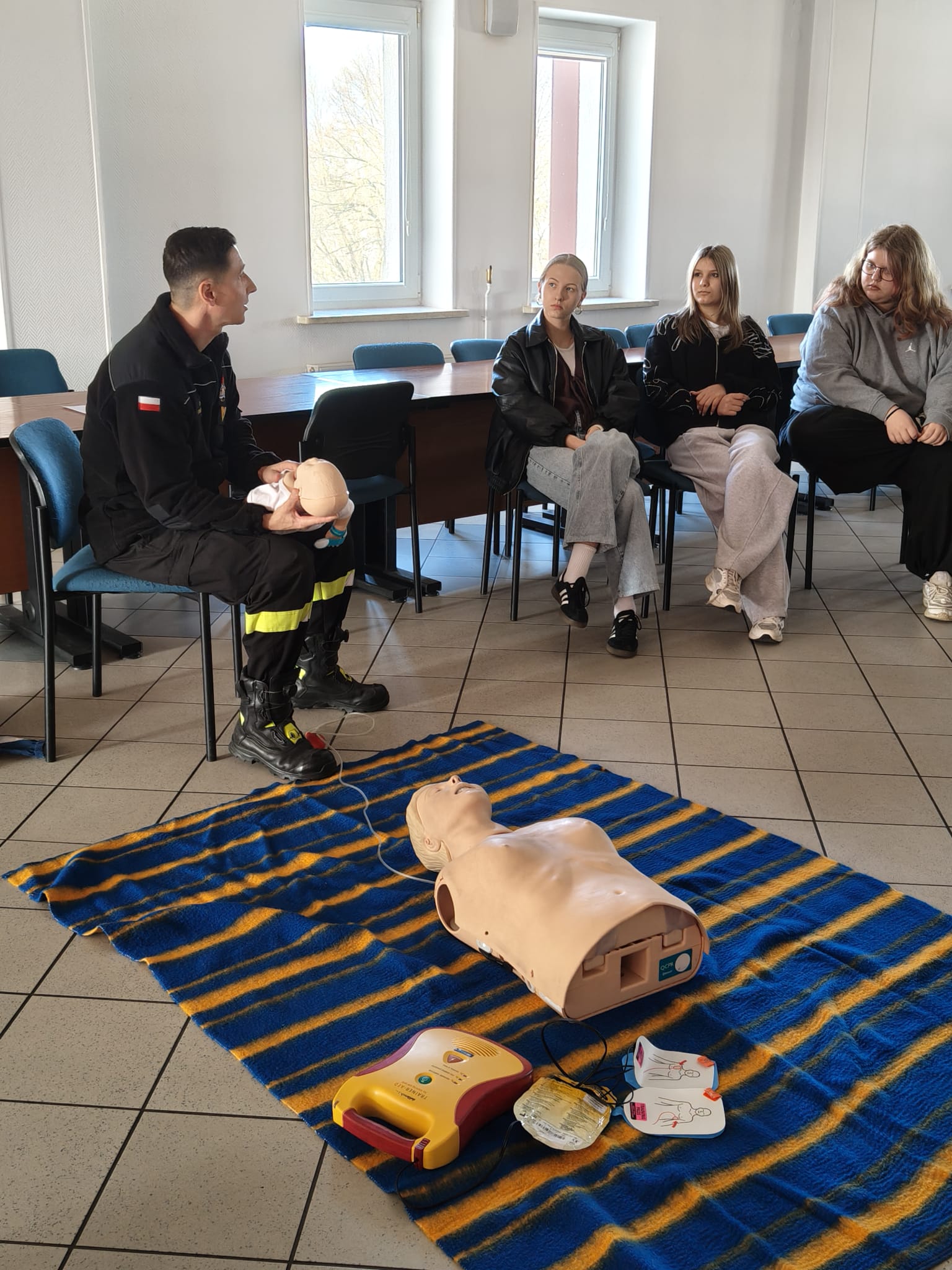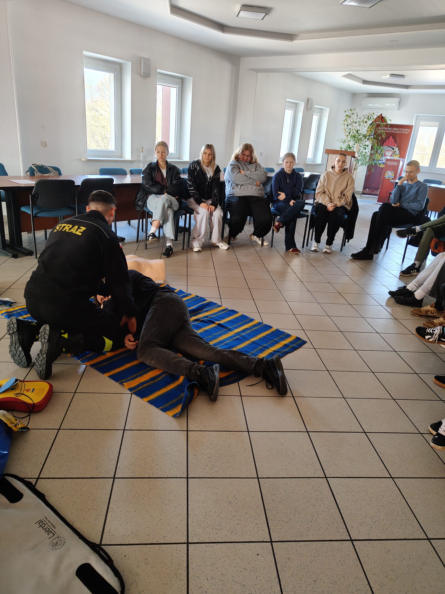 Podczas spotkania strażacy w przystępny i ciekawy sposób przybliżyli uczniom zagadnienia związane z bezpieczeństwem. Uczniowie poznali podstawowe zasady udzielania pierwszej pomocy przedmedycznej oraz właściwego reagowania w sytuacjach zagrożenia zdrowia i życia. Po części teoretycznej odbyły się zajęcia praktyczne – uczniowie mieli możliwość ćwiczenia udzielania pierwszej pomocy na fantomach pod okiem strażaków, co pozwoliło im w praktyce przećwiczyć zdobytą wiedzę.