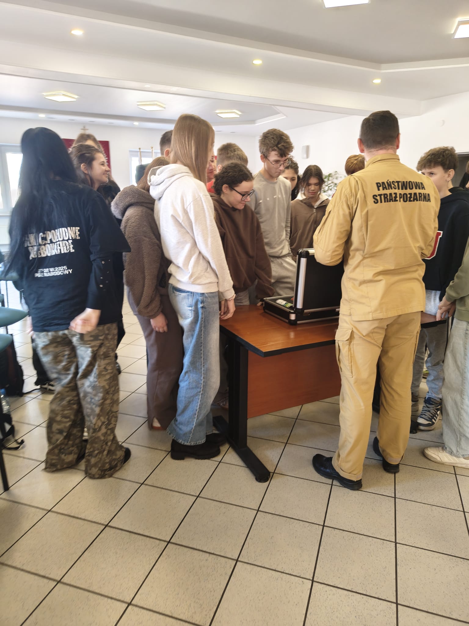 Uczniowie mieli również okazję poznać specyfikę pracy strażaka oraz dowiedzieć się, z jakimi wyzwaniami mierzą się na co dzień funkcjonariusze. Dużym zainteresowaniem cieszyło się zwiedzanie komendy, w tym centrum dowodzenia, gdzie uczniowie mogli zobaczyć, jak wygląda przyjmowanie zgłoszeń oraz koordynowanie działań ratowniczych. Dodatkowo zaprezentowano im wozy strażackie oraz sprzęt wykorzystywany podczas akcji ratowniczo-gaśniczych. Ważnym elementem wizyty był również pobyt w muzeum pożarnictwa, gdzie uczniowie mogli zapoznać się z historią straży pożarnej oraz obejrzeć zabytkowy sprzęt gaśniczy.