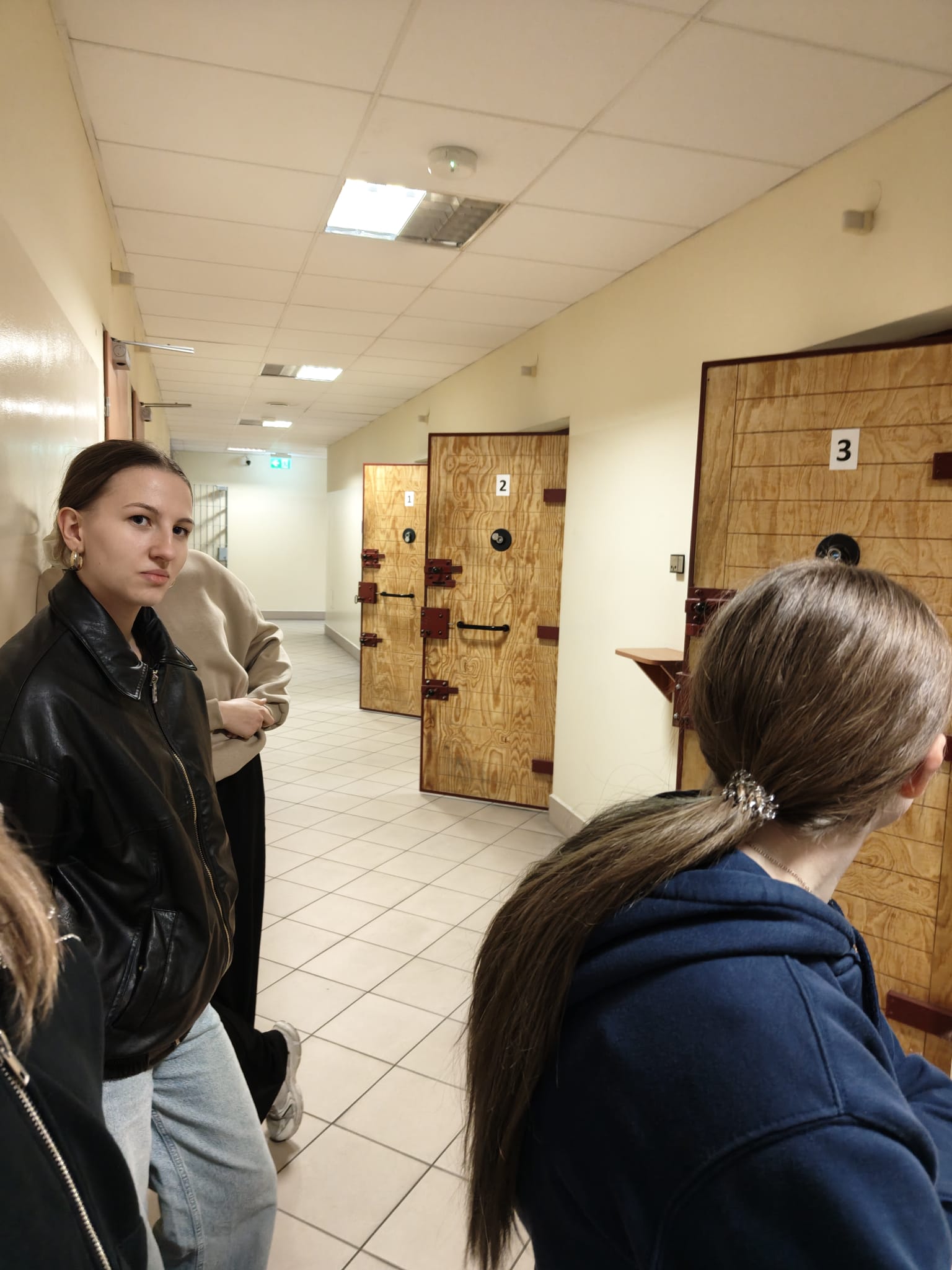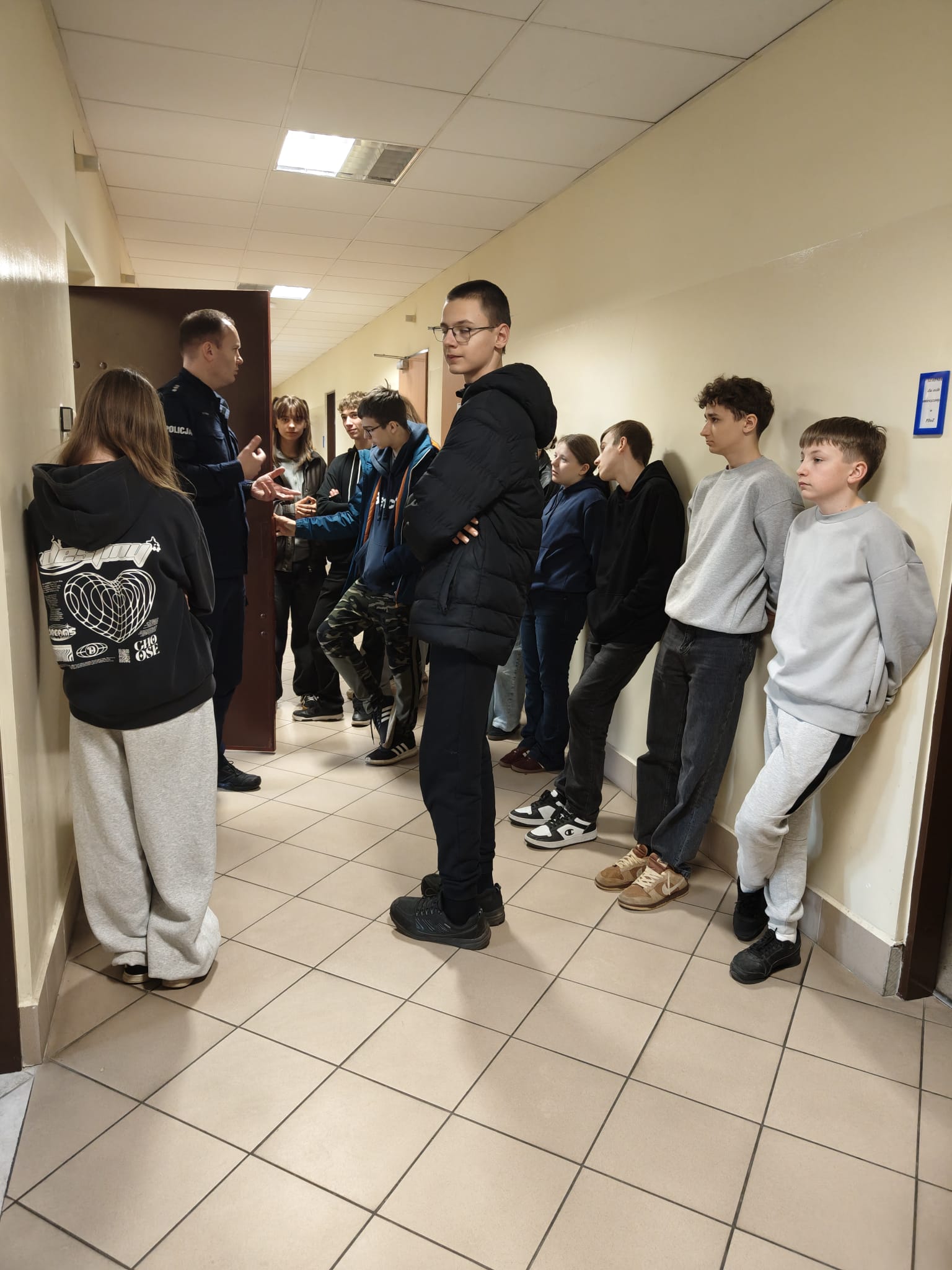 Kolejnym punktem wyjazdu była wizyta w Komendzie Powiatowej Policji. Podczas spotkania uczniowie zapoznali się ze specyfiką pracy policjanta, poznali strukturę organizacyjną jednostki oraz zakres obowiązków funkcjonariuszy. Duże zainteresowanie wzbudził pokaz na strzelnicy, a także prezentacja tresury psów służbowych, które zaprezentowały swoje umiejętności w zakresie posłuszeństwa i reagowania na polecenia przewodnika. Uczniowie mieli również możliwość zobaczenia Pomieszczenia dla Osób Zatrzymanych, co pozwoliło im lepiej zrozumieć konsekwencje łamania prawa.