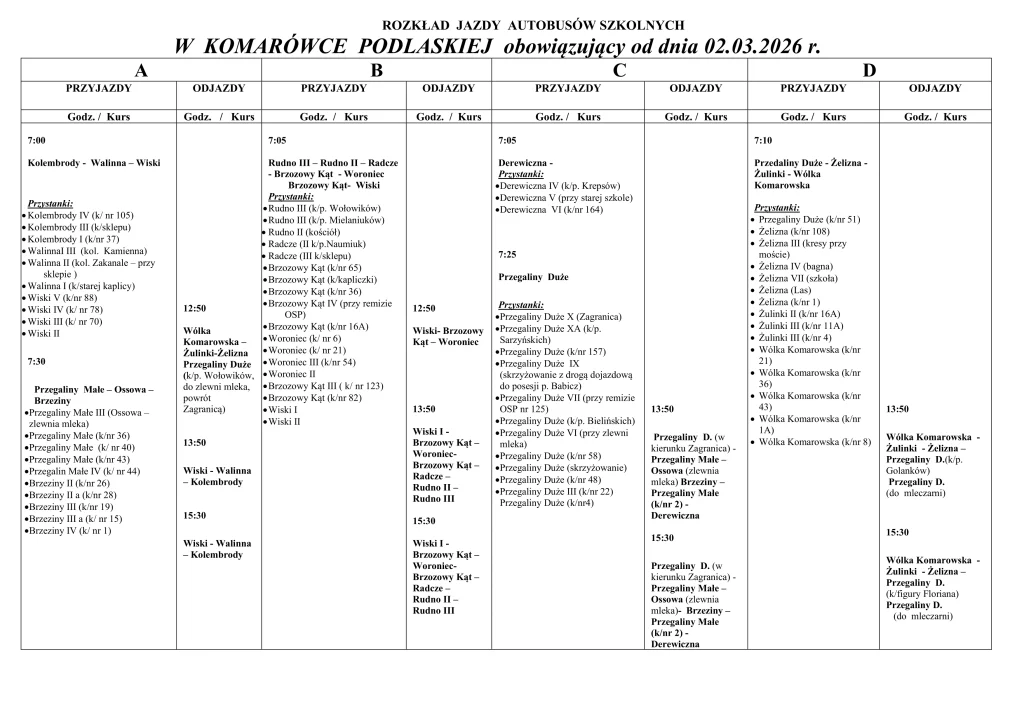 Zmiana rozkładu jazdy od 02.03.2026 r.